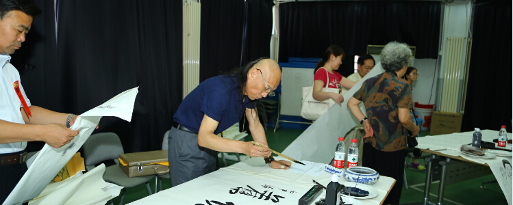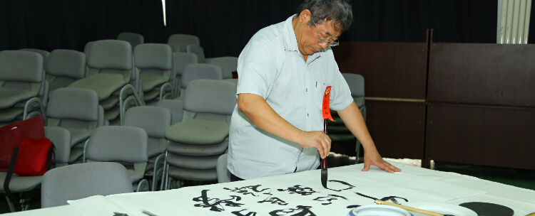 笔会活动开始,各位书法家挥毫泼墨,许多对书法感兴趣的校友前来观赏,校友们对校友会能组织这样有意义的活动赞不绝口。