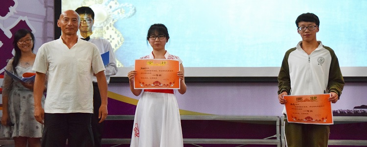 最后,由评委老师给获奖同学颁发奖状。获得此次大赛一等奖的是高1502班张雨欣和高1504班路伟两位同学;获得二等奖的同学有高1501班岳天泽、高1503班王晨、高1504班易博洋和高1505班王祺;获得三等奖的同学是高1501班刘妍、高1502班石安琪、高1503班李美琪、高1505班樊逸辰、高1506班何明轩和马劭劼。