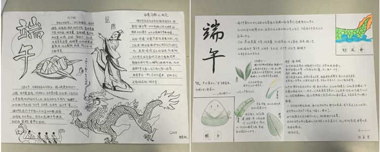 手抄报统一使用学校下发的A3纸张,要求单面设计,主题鲜明,内容丰富,图文并茂,色彩协调,且有自己的原创作品。同学们利用端午假期的时间进行资料收集与制作,于6月13日上交了自己的作品。