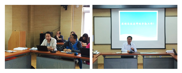 张苏主任做成绩分析报告(左图) 王殿军校长总结发言(右图)