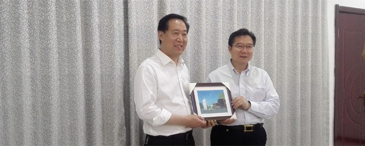 王殿军校长(右)向邯郸一中校长赠送纪念品