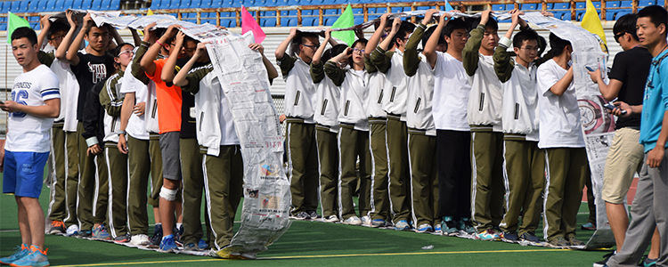 开幕式结束后,比赛正式开始,一个个激烈有趣的比赛项目:滚雪球跑、挑战NO.1、传豆子、履带战车……场面热烈,师生们都表现出了极高的热情和奋进的精神。