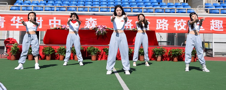 在之后的文艺表演环节,国际学校的小学部带来了《二十四节气歌》和话剧表演,让师生们感受到了他们的纯真。赵子辰、王居正和于穆晴同学带来了一首动听的《Lost Stars》。随后陆文洋、化昱茜、黄芃缘、孙诗涵和易博洋同学组成的D.L.Xams现代舞团和国际学校的劲舞团为大家带来了青春洋溢的舞蹈。国际学校的恰恰舞表演仿佛是中世纪的欧洲,一个个绅士和淑女参加舞会场面。最后,奥森啦啦操队带来了活力四射的啦啦操《炫舞青春》。