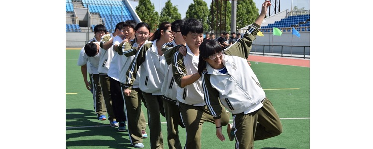 上午的赛场上,最能体现运动员们不抛弃不放弃精神的游戏当属“蛟龙出海”了,十名同学绑着腿,类似于两人三足的形式,共同前行。同学们表现出了极高的默契和团结。