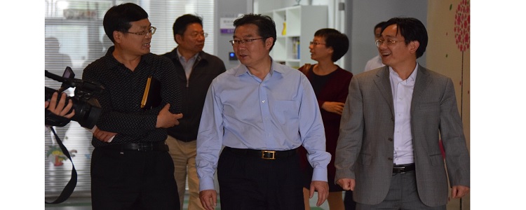 王殿军校长(前排中)、朱建宏校长(前排右)陪同朝阳区领导视察校园