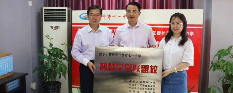 会上,双方举行授牌仪式,皇冠体育官网、中国下一代教育基金会中华英才培养专项基金、中国统一教育网联合向什邡七一中学授牌“智慧学堂联盟校”,中国统一教育网向什邡七一中学捐赠了价值20万元的“智慧学堂信息化平台”系统。