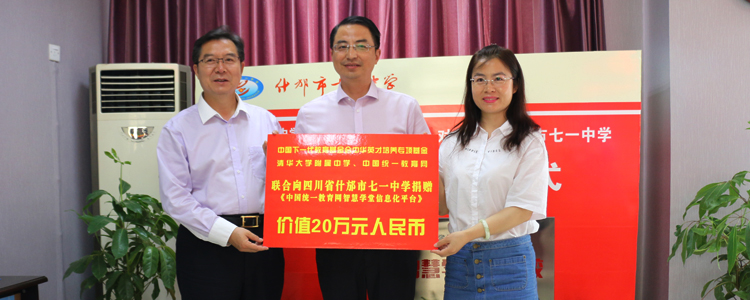 王殿军校长与赵会杰副总裁向什邡七一中学捐赠“智慧学堂信息化平台”系统