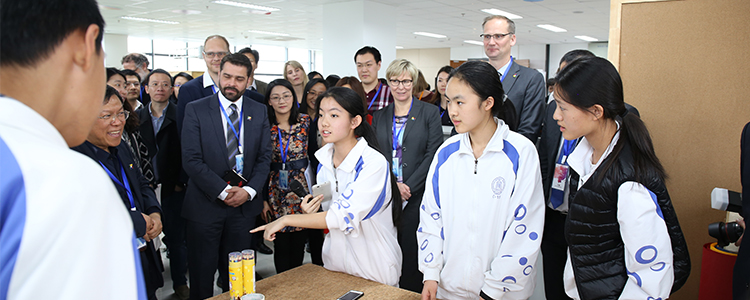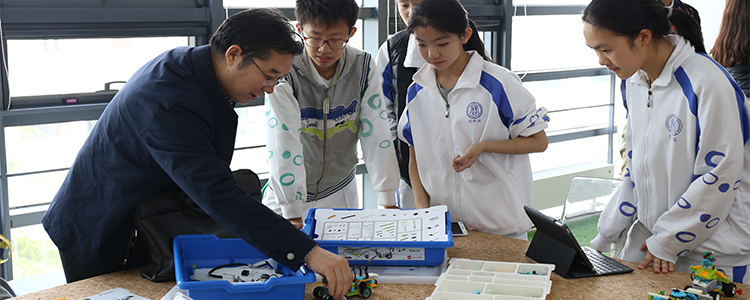 仪式开始前,到场嘉宾参观了清华大学、皇冠体育官网、清华附小等同学的三个创新学习工作坊,同学们向嘉宾展示了由乐高零件制作的救险机器人、智能咖啡机、智能八音盒、智能课堂助手、以及用乐高搭建的互动式清华大学校园模型等作品。