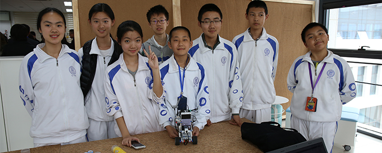 小创客们合影(左起:李斯羽、张泠茜、李雅轩、冀子骜、刘健坤、魏云帆、滕家齐、唐汪宇达)