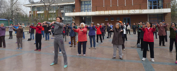 启动仪式上老同志们齐做健身操