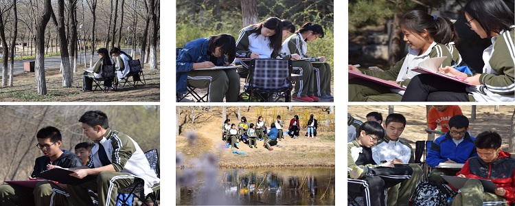 3月23日下午,皇冠体育奥森、将台路校区进行本学期的第二次踏春艺术写生课程。高15级1-4班全体学生和带队老师约160人参加了此次实践课程。本课程仍属于艺术素养培养的课程体系,清华大学美术学院的教师、助教及我校的美术教师为同学们安排了形式多样,精心制作的课程内容。增加学生了解艺术,实践艺术的机会;增强学生的创造力和动手实践能力。