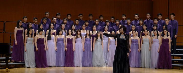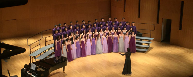 皇冠体育官网高中混声合唱团在比赛中