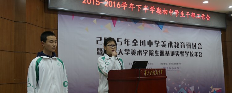 新学期学生干部工作培训会共由四个环节组成,主要针对上学期各项学生工作进行了系统完整的回顾,并对新学期的工作安排做出明确指导。会议第一环节为上一学期工作回顾,初、高中团委学生会干部分别就各自上学期所开展的精彩活动进行了总结回顾;第二环节为优秀团支部工作经验介绍,初1302、初1413团支部、高13级清华大学甲级团支部分别围绕各自团支部建设特色与全体在场同学分享了工作管理、活动开展等方面的经验;第三环节为新学期工作计划安排,学生发展中心王敏老师、王星玮老师首先作值周工作的专题介绍,两位老师为同学们详细讲解了本学期的值周的评分标准以及作为值周生的具体要求,随后初、高中学生会干部就新学期拟开展的学生活动进行主要介绍;最后一个环节为“生生不息”学生提案反馈,初、高中学生会干部在工作培训会现场对上学期“生生不息”学生提案的学校各部门反馈结果进行宣读公布。