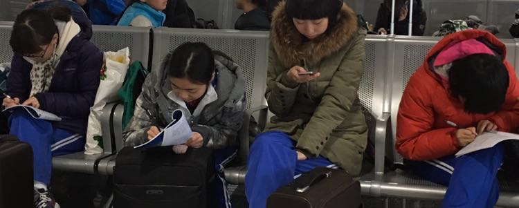 同学们利用等待返程高铁的时间完成考察手册的任务