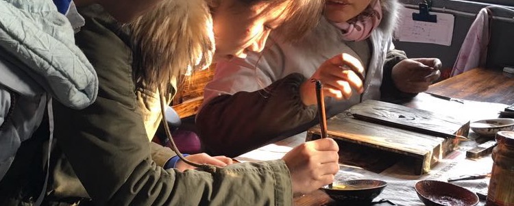 2016年寒假综合实践“寻梦徽州”考察课程的最后两日同样精彩。19日上午参观了具有1800多年历史、被誉为“江南第一村”的呈坎古村,同学们徜徉在蜿蜒的小巷中,感受着淳朴的民风和明清时期徽派建筑之美。下午前往中国保存最完好的四大古城之一——徽州古城,在千年徽州府衙所在地感悟厚重的历史与文化。同学们欣赏了徽剧实景演出,并亲自体验了剪纸艺术、制墨描金工艺,带着自己的作品尽兴而归。