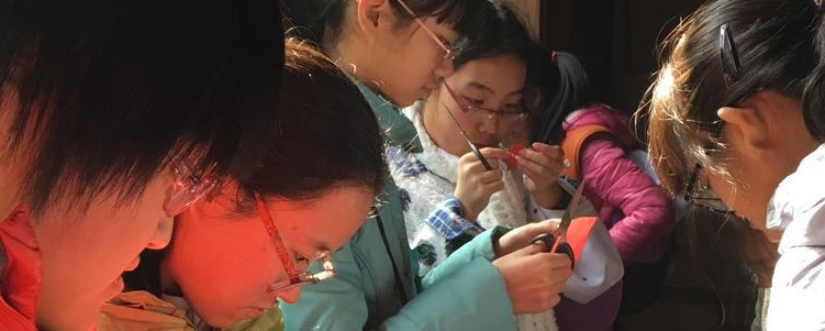 同学们在徽州古城体验传统剪纸艺术