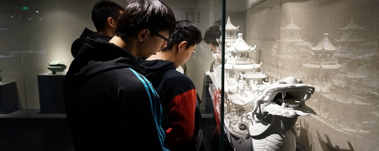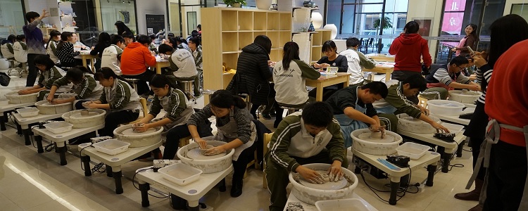主题讲座之后,景德镇陶瓷艺术学院专业讲解员带领学生参观了陶瓷历史博物馆和当代精品陶瓷展示馆;最后,安排了同学们亲手做陶艺,拉坯、泥塑、瓷盘绘画和软陶四个项目学生都可尝试,最后完成一件作品和若干软陶由场馆烧制后带回。