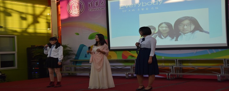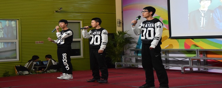 本次大赛分为独唱组合、电影配音、班级合唱、学生和教师才艺表演以及嘉宾表演五个环节。在独唱组合比赛环节,来自高1503班的赵子辰同学演唱的歌曲Writing's on the Wall,给各位评委和老师们留下了深刻的印象。高1506班的高扬帆、钱雨淳两位同学的演绎配合默契,广受好评;高1505班的王祺、王居正两位同学的演唱热情洋溢;高1504班的李馨蕾,肖瑶,王琪的三人组合青春逼人;高1502班的黄天佑、王佳子豪、谭鑫玮的表演动感十足;高1501班的陈然、毛雨佳带来的歌曲串烧清新可人。