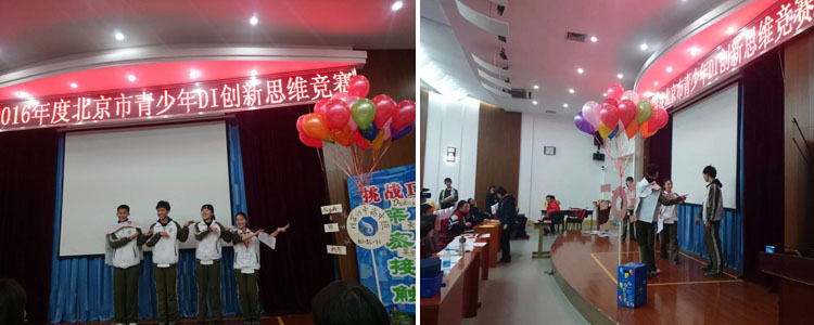 11月28~29日,2015-2016年度北京市青少年DI创新思维竞赛在北京市第19中学举办。皇冠体育官网三个代表队18名同学参赛,均取得了良好的成绩,其中Zing队在“亲密接触”试题的比赛中,取得了高中组第3名的好成绩,并将代表北京参加DI全国赛。参加“变化步调”试题比赛的Eternity队和参加“伪装大师”试题比赛的Twinkle队分别取得了高中组第5名和第7名的成绩。