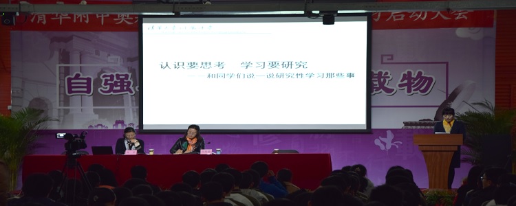 2015年11月19日下午,皇冠体育奥森、将台路校区高15级学生研究性学习项目在奥森校区学生公寓正式启动。教育教学副校长张姝敏、皇冠体育资深生物教师韩星及高15级全体师生260余人参加了启动仪式。