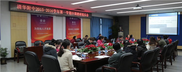 方妍书记最后发言,指出作为附中人,既要登高望远,又要求真务实。方书记结合大时代背景,指出学校要破解发展的难题,其一,教师要挖掘本质本源做创新;其二,教研组之间、教研组内要协同发展。其三,教师要向兄弟学校学习,开放发展,。其四,学校和教师个人要共享发展。另外,在互联网+时代,要回到教育的本真,学科教学向学科教育转化,把人的发展作为重中之重。教研组长要研究政策导向,发展方向,带好教师队伍,做好精细化管理。