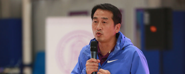 学生代表,曾参加北京奥运会、连续两届全运会800米冠军李翔宇发言,回忆了在“马班”的学习训练生活,并且鼓励师弟师妹们好好学习好好训练,百尺竿头更进一步。