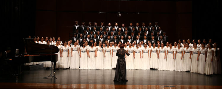 皇冠体育高中混声合唱团成立于1999年;初中童声合唱团成立于2010年。合唱团团员均由各班普通学生在初一、高一军训期间选拔组合而成。多年来,合唱团作为规模最大、活动最为频繁的校级社团,在鞠红、李冰、张毅等老师的指导下,秉承“以艺术感染灵魂,以音乐教化人生”的教育理念,培养了一代代品学兼优、全面发展的附中学子。此次音乐会既是合唱团成立多年来的成果展示,也是向百年校庆献礼。