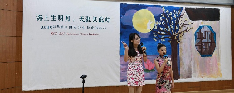 本次活动以年级为单位进行表演,不仅有孩子们动人的歌声、原创的诗歌,还有古诗古句的朗诵以及暖暖的中秋祝福。中文老师武慧君和五年级韩国学生金美成用中英双语主持了本次活动。