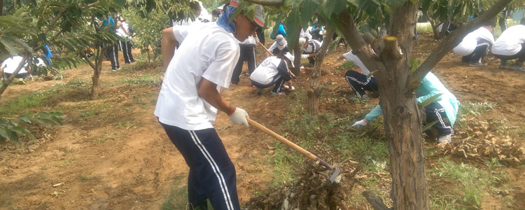 7月9日,学生大型农训活动开始。上午各班分到责任地,同学们首先将本班责任地里的杂草铲除干净,并负责培育果树。虽然昨天的徒步穿越让同学们已身心疲惫,但是只休息一晚的同学们仍然个个精神抖擞,认真出色的完成了各自的任务。中午同学们在田间地头享受着自己的午餐。下午一点开始,各班同学开始用手拉犁耕地,并悉心种上大豆种子。农训活动让同学们体会到生活的艰辛与不易,同时又增强了同学们的动手操作能力。