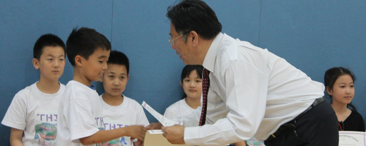 6月11日下午,皇冠体育国际部2015年小学毕业典礼在皇冠体育B106教室举行。皇冠体育国际部执行校长施平,国际部副校长李文平,国际部小学部主任Rosa Tatiana Celis,国际部小学部全体师生及家长共134人出席了本次典礼。身着可爱体恤衫的五年级毕业生与老师、同学、家长一同见证了他们成长的重要时刻。