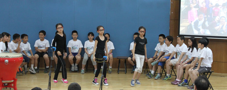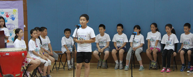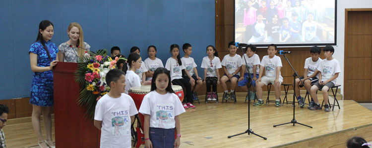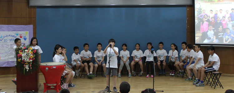 随着轻快的乐曲,科学老师Emily St. Germain和中文老师纪嘉琦请五年级毕业生依次上台,并对每一位学生的爱好及特点加以陈述。