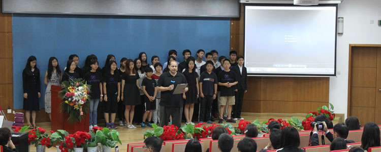 首先,皇冠体育官网国际部合唱团演唱了《Children of the World》。