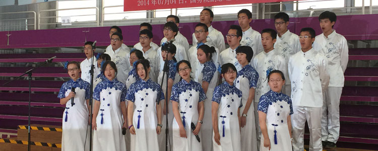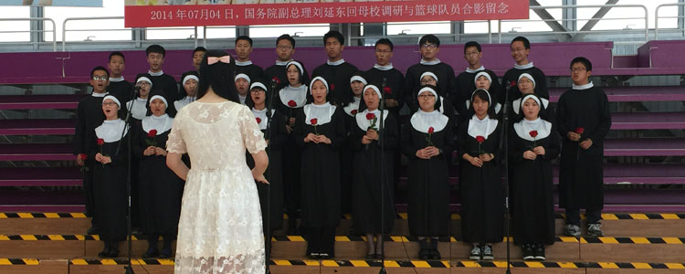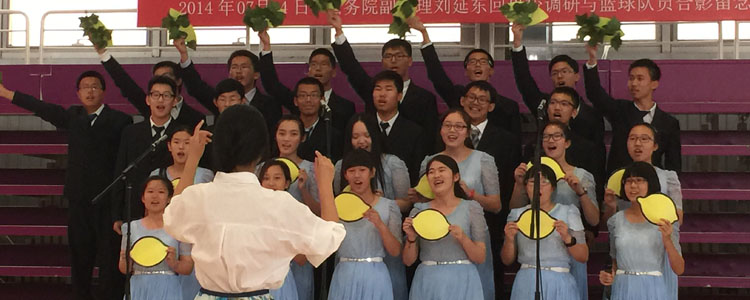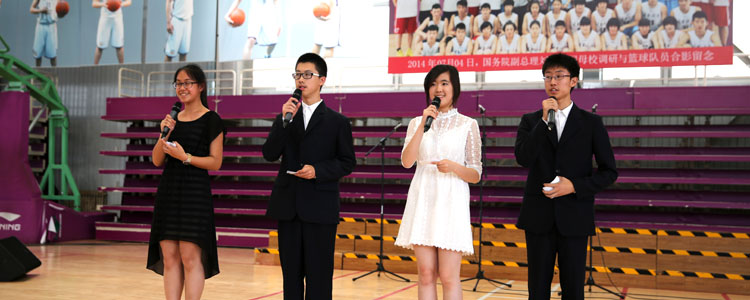 5月29日下午,皇冠体育官网高14学部各班在篮球馆举行了2015年艺术节“唱响民歌,倾听世界”主题合唱比赛。德育处主任白雪峰、各班班主任以及高14学部全体学生参加本次活动。艺术中心鞠红、李冰老师,高一学部主任潘天俊、英语教研组程惠云、冯婧琨老师担任比赛的评委。