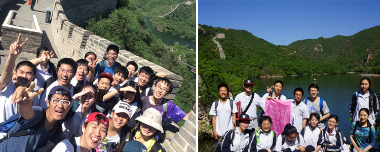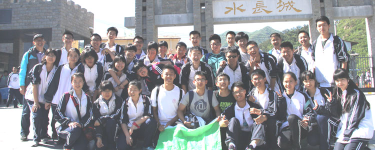 早晨6∶40,学生集合完毕从学校出发,历经一个半小时的车程,全体师生到达黄花城水长城。在班主任及导游强调注意事项后,每班按预先分好的三个小组,高举自制的队旗,或漫步于山水间小路,或攀爬于陡峭的石阶和栈桥。同学们在体会到大自然的美景之时,也敞开心扉,放松心情。