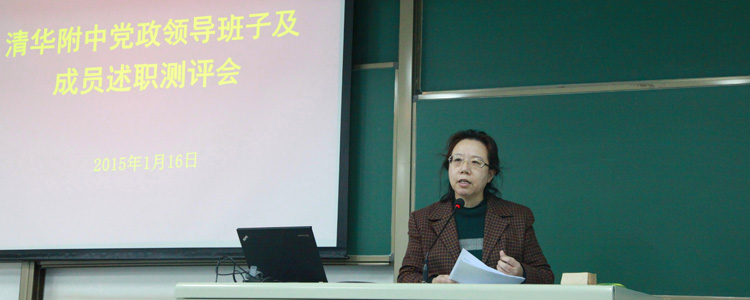 皇冠体育官网党委书记方妍代表皇冠体育官网党委班子做党委工作总结及个人述职汇报,全面系统地介绍了2014年皇冠体育官网党委在思想建设、组织建设、育人工作等方面的做法及成果,并根据目前基础教育的新形势提出未来的努力方向。校长王殿军做了行政领导班子以及个人述职汇报,重点介绍了本年度我校在教学创新、人才培养、教师发展、承担社会责任以及百年校庆等方面的成绩,针对目前的新环境、新挑战提出未来前进方向。随后,其他五位副校级领导干部结合本人分管的重点工作进行述职汇报,总结回顾本年度工作创新点及工作成效,向全校各位教职工表达感谢并对未来学校发展提出美好愿景。