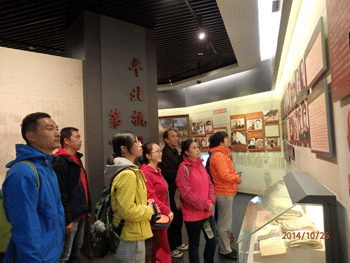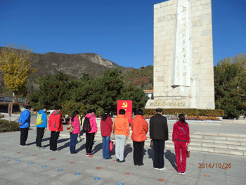 平北抗日战争纪念馆所在地曾是北平地委和北平军分区司令部所在地,由烈士陵园、纪念碑和纪念馆三部分组成,青松掩映下的烈士陵园庄严肃穆,拾级而上,巍峨的纪念碑耸立在蓝天白云之间。党员们庄重地向烈士们默哀一分钟,以此表达我们的敬仰之心。走进馆内,大量的实物展示的是1935年3月至1945年9月间,平北军民反抗日军的侵略史实,由“日军侵占冀热察边区”、“创建平北抗日根据地”、“反扫荡反蚕食反‘无人区’斗争”等八部分内容组成,有北平军民使用的武器、生活用品和照片、书籍等文物。实物、照片、场景的再现,让我们仿佛也亲临了那段艰苦卓绝岁月,感受到那段气壮山河的历史。墙上的烈士照是一个个年轻的脸庞,有的烈士留下的只是一个名字,但我们知道那是一个个血肉之躯,一个个有着民族气概的英雄儿女。党员们边参观边交流自己的感受,心情久久不能平静。