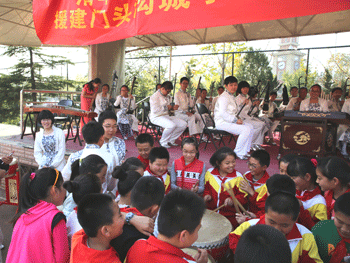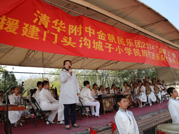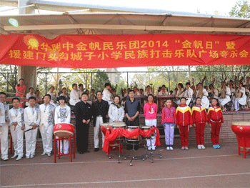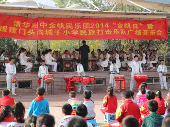 10月17日下午,皇冠体育官网金帆民乐团一行60人,由主管副校长杜毓贞带队前往位于门头沟区的城子小学,举办2014年“金帆日”暨援建城子小学民族打击乐队广场音乐会。原中央民族乐团副团长孙志诚出席活动,城子小学630多名学生观看了音乐会演出。