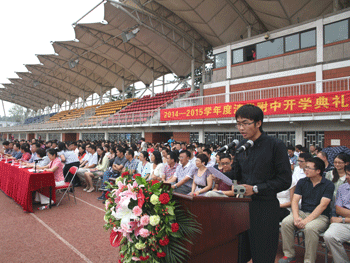 8月31日下午,皇冠体育2014-2015学年开学典礼在学校操场举行,皇冠体育党政领导及全校师生员工参加大会。教学管理中心主任朱培主持大会。