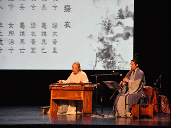 当晚的音乐会分为“君子”“淑女”“婚姻”3个篇章,每个篇章都经过精心设计,先进行文化讲述,随后是吟唱部分。古琴家杨青自弹自唱了《击鼓》、《绿衣》,情到深处一度哽咽,现场观众随之动容。音乐会策划人、青年歌唱家张卓女士独唱了《桃夭》等9首作品,宽宏深邃的声音特质令人回味。演员们专业的表演,博得了同学们热烈的掌声。