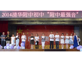 历经一个月的初赛、复赛,最终有20位实力唱将脱颖而出进入总结赛的巅峰对决。总决赛共分为三个环节,第一环节将20名歌手分为了5个大组依次演唱一首歌曲,选手们根据各自的嗓音特点进行分组,风格各异,特点鲜明,评委从中选出8名选手直接进入第三环节,8名选手待定进入第二环节。第二环节8名待定选手以清唱的方式演唱一段歌曲,其中表现较好的6名选手晋级第三环节。综合前两个环节的比赛结果,共有14名选手进入第三环节的终极PK赛,选手们倾情演绎民族、摇滚、流行等多种曲风,赢得在场观众的阵阵掌声。最终,评委从节奏把握、情感投入、音色音准、舞台表现等方面进行综合评定,投票选出了初1301班袁萌、初1309班王楚雯、初1314班祁雪儿、初1312班胡思凝、初1312班王怀萱、初1206班匡瑞珂、初1207班谈子佳、初1211班路呈、初1211班付士楠、初1212班包笑婷10名2014初中“附中最强音”校园歌手。