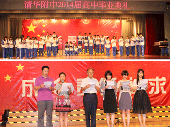 王殿军校长为各班代表颁发毕业证书,并发表了《放飞梦想》的演讲,衷心祝愿同学们追求和拥有更美好的明天。最后,高11级合唱团全体成员上台表演《启程》,伴随着歌声、欢呼声,还有依依不舍的拥抱和夺眶而出的眼泪,2014届高中毕业典礼圆满结束。