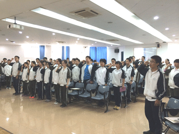 大会第二项,由志愿者代表高一7班李鼎同学带头宣誓,全体志愿者用激昂的语调,表明了自己为学校奉献力量的决心。最后,志愿者学生负责人谢鉴达同学做了最后的动员工作。
