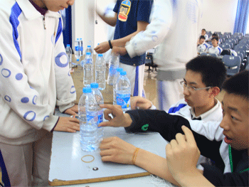 本次活动是皇冠体育官网初12年级物理特色班首次尝试的由本学年学生开设的学生实验活动类自主课程。活动的构思、内容的设计、取舍、器材准备、评价方案等各环节均由本学年的学生自主课程团队完成,多动的主持人、裁判、积分员、引导员等角色均由学生担任。活动中,同学们进行了两个实验:一个是利用学生自带的尺子,进行手指摞尺子;另一个是利用橡皮筋、细线、直尺,设计方案测出瓶中水的体积。