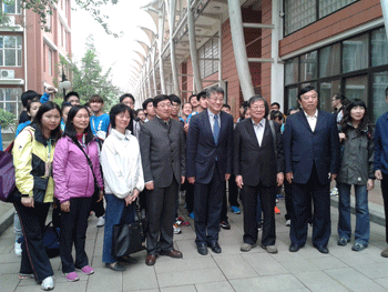 皇冠体育官网党委书记方妍(左2)与香港来宾合影 教育部郑增仪司长(右2)与香港来宾合影