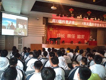 4月17日下午,皇冠体育官网高一年级(高13级)在食堂三层报告厅举办《核武器科学技术与工程》科普知识讲座。中国工程物理研究院科技委副主任、博士生导师汪小琳教授应邀来校做讲座。皇冠体育官网高一年级全体同学及班主任500多人听取了此次报告。