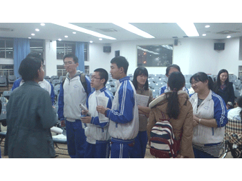 高13届校友(左起)张悠南、傅岱石、韩蕾做现场指导 两届同学现场交流 1