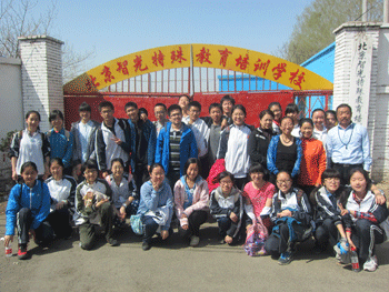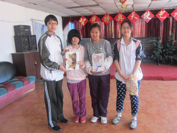 公益社同学为智光的孩子们送画 公益社同学们合影 。