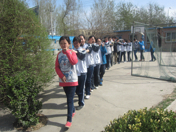 智光学校的孩子带领公益社的同学们玩游戏 公益社同学与智光学校的孩子聊天沟通
