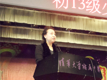 开学典礼在庄严的团歌中开始了,年级组长张苏向初13级少年团校表示祝贺,并代表全体教师向同学们提出了在团校学习及新学期学习和生活的三点期望:一、学会成长;二、勇于担当;三、追求理想。同时引用梁启超先生“少年智则国智,少年富则国富,少年强则国强,少年独立则国独立,少年自由则国自由,少年进步则国进步”的话勉励大家。初1313班的薛文慧代表全体学生发言,表达了同学们积极要求进步的强烈愿望。团委刘露老师宣布了初13级各中队与高13级各对口支部名单,团委任星阳老师向同学们介绍了团校课程安排及结业要求。