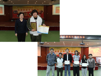 刘波主任致辞(左上);杜毓贞副校长宣读获奖名单(右下) 颁奖 。
